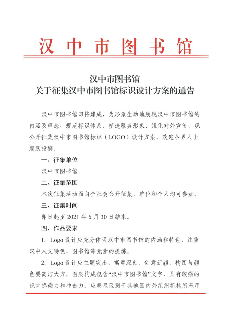 关于征集汉中市图书馆标识设计方案的通告
