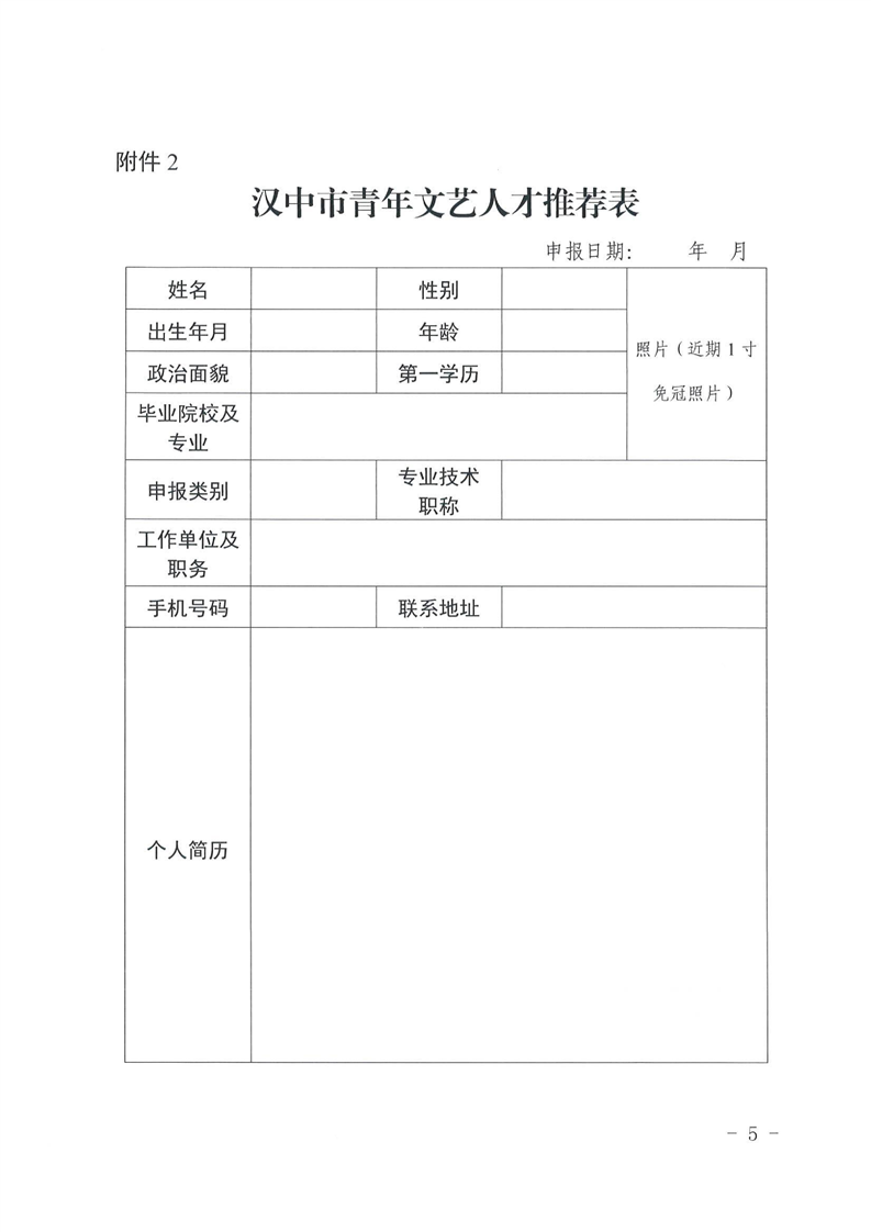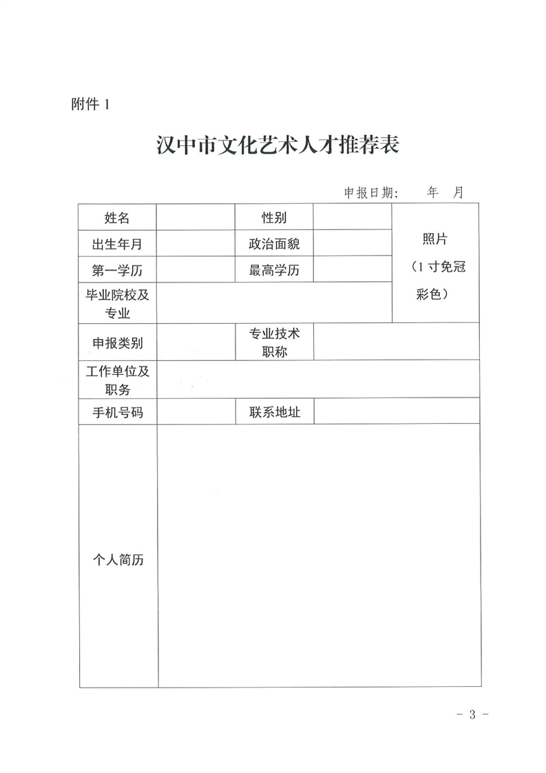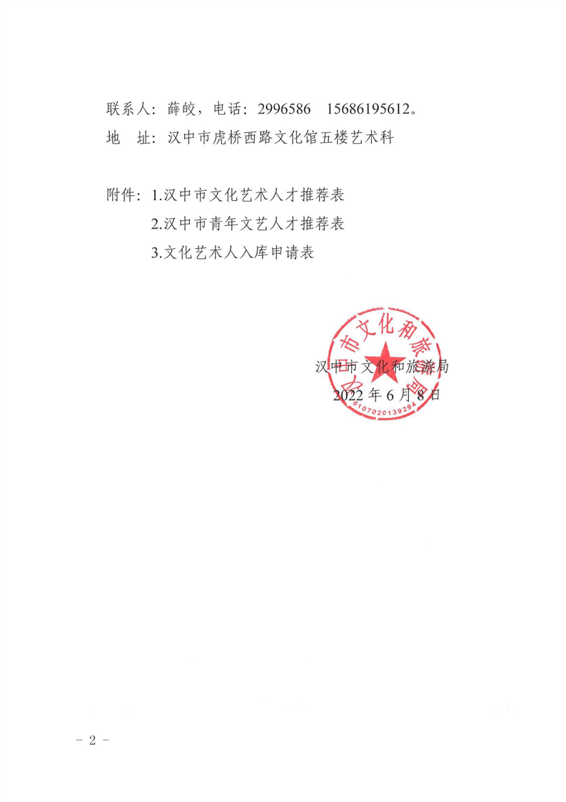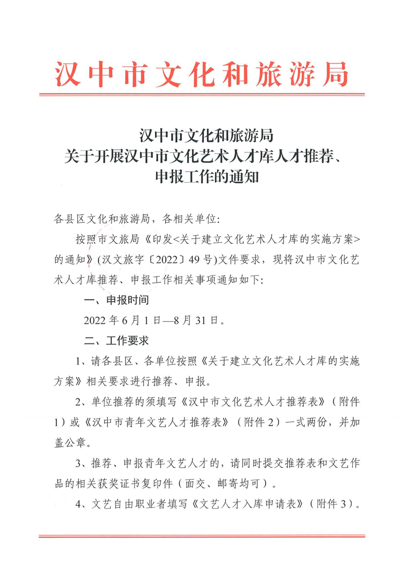 汉中市文化和旅游局关于开展汉中市文化艺术人才库人才推荐、申报工作的通知