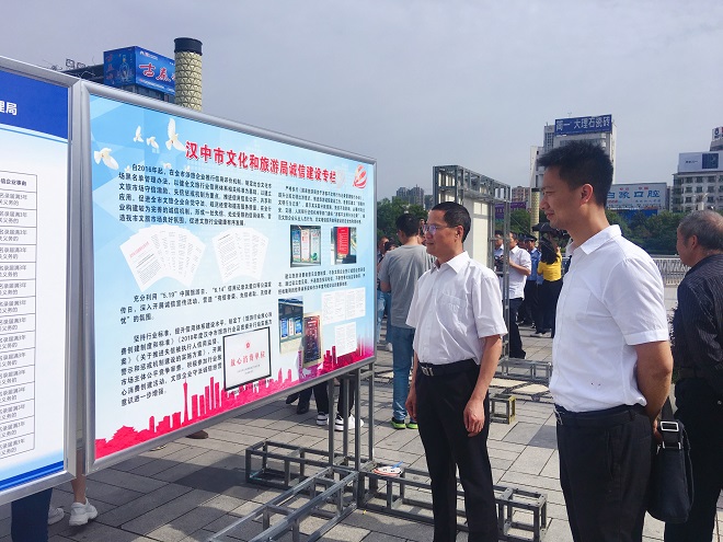 为认真贯彻落实国家、省、市“诚信建设万里行”主题宣传活动要求,深入推进“信用汉中”建设,提升全市诚实守信意识,大力营造“知信、守信、用信”的良好氛围,7月2日,由市发改委、市委宣传部、网信办、文明办、信用办组织的汉中市“诚信万里行”启动仪式暨重点领域红黑名单发布活动在市中心广场举行,市文旅局龚富裕副局长带领相关人员参加了启动仪式。