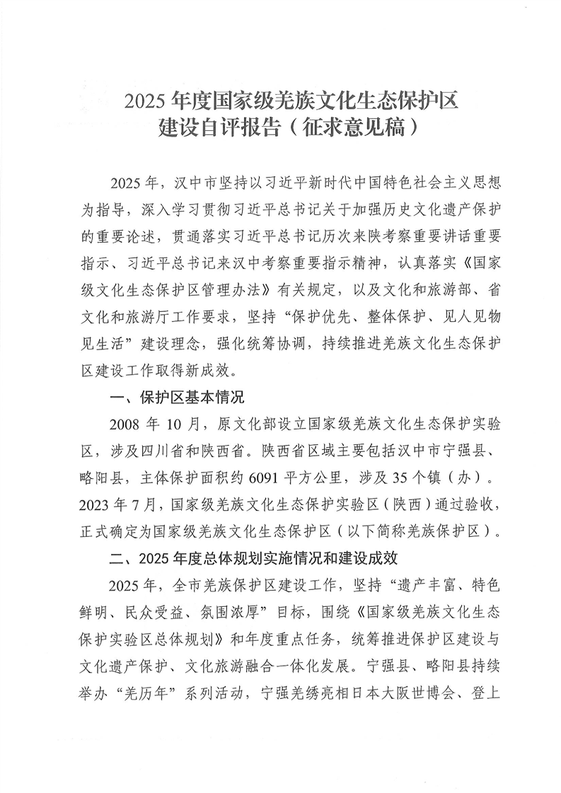 2025年度国家级羌族文化生态保护区建设自评报告(征求意见稿)