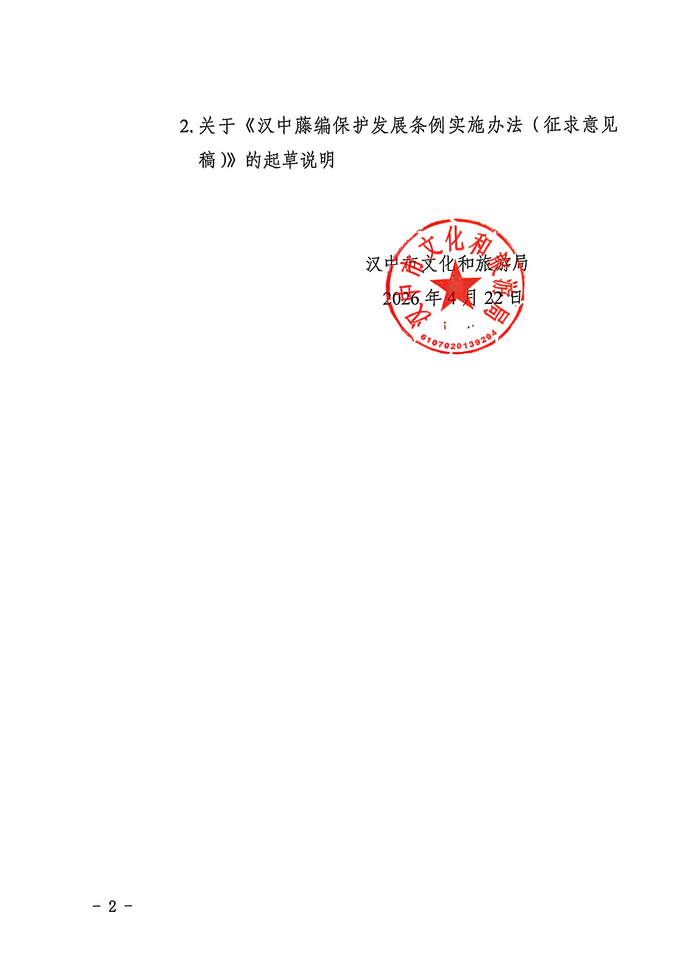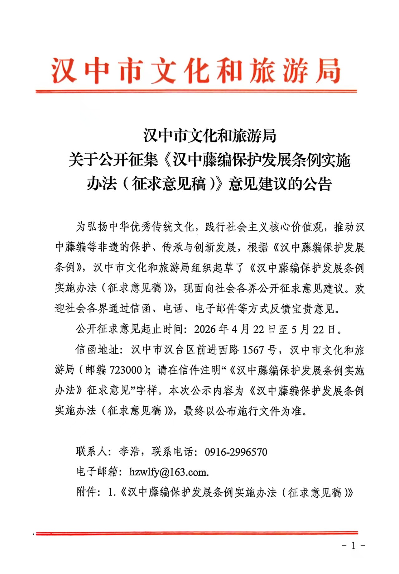 汉中市文化和旅游局 关于公开征集《汉中藤编保护发展条例实施办法(征求意见稿)》意见建议的公告